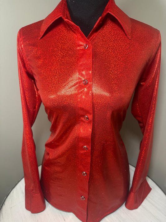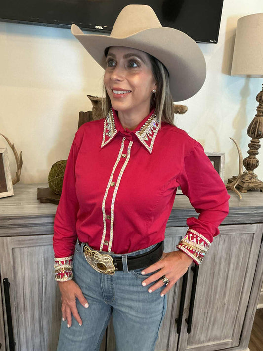 Heartbreaker Bright Red Sequin Barrel Racing Show Shirt
