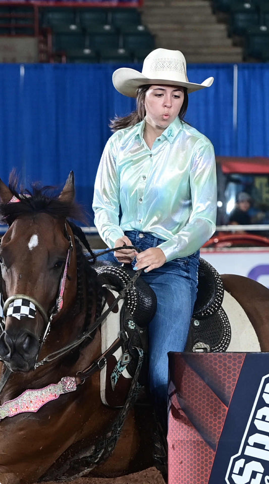 Fast Lane Flash Iridescent Mint Barrel Racing Show Shirt