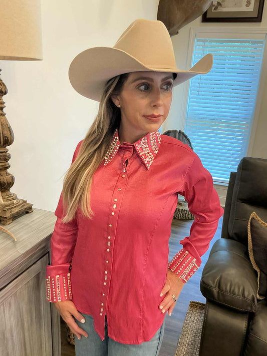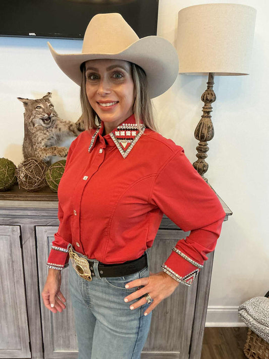 Rodeo Royalty – Fancy Rhinestone Shirt in Ruby Red
