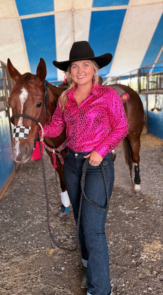 Witness the captivating scenes of the "Ranch Girls" with their horses elegantly adorned in our rodeo shirts, showcasing a perfect blend of style and functionality that enhances their performance in the rodeo arena. Each image captures the essence of our premium shirts, tailored for both comfort and durability, ensuring these riders are not only stylish but also fully equipped for success in the rodeo sport.