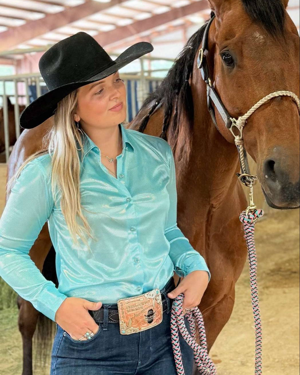 The Aquamarine Rodeo Stripe Show Shirt