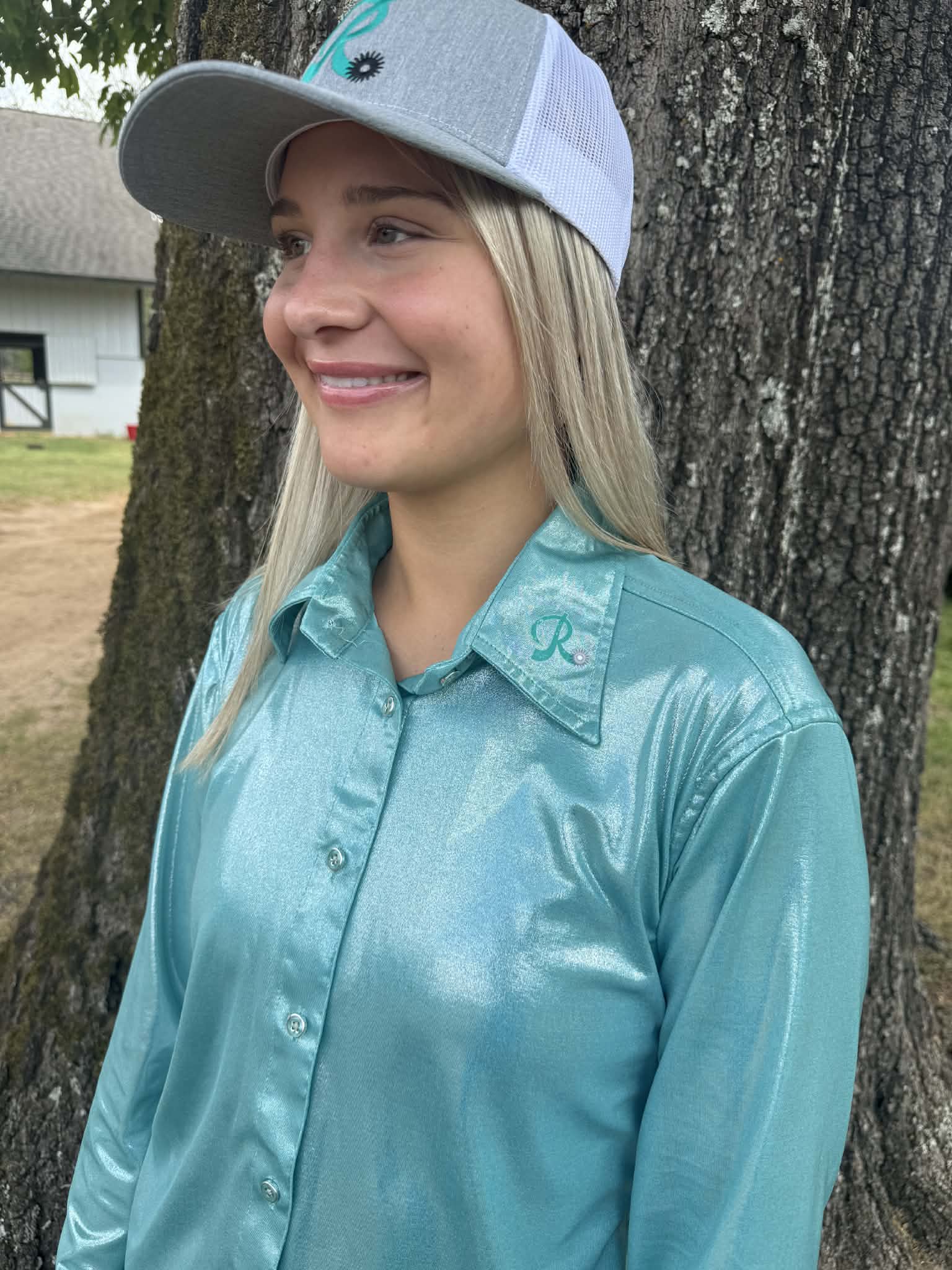Turn heads the second you step into the arena. The Turquoise Mirage Performance Show Shirt was designed for riders who want to stand out with confidence and polish. Featuring a sleek, high-shine turquoise finish, this shirt catches the light beautifully, giving you that winning presence before you even make your first run.